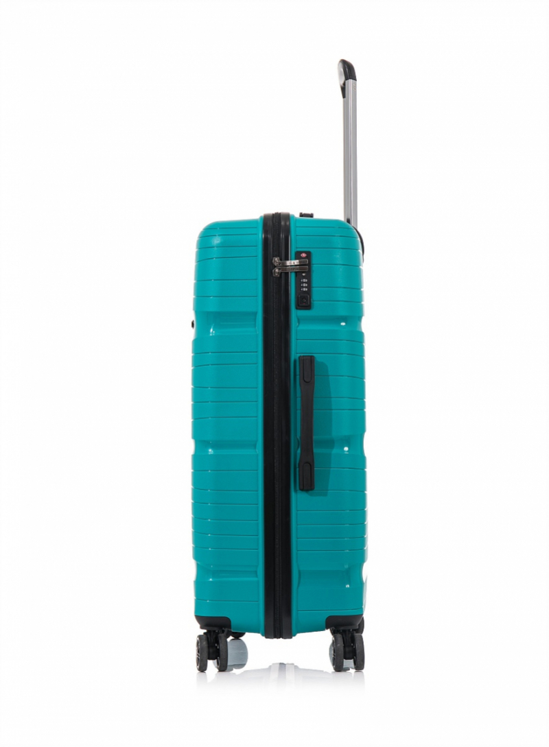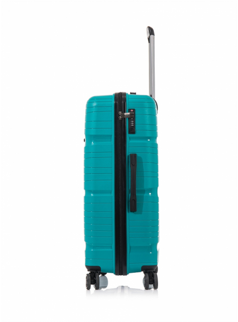Stredný cestovný kufor nemeckej značky D&N - s TSA zámkom, kufor s viacúrovňovou teleskopickou rukoväťou a silnou ochranou hrán je vyrobený z vysoko kvalitného odolného polypropylénu - z ľahkého a pružného materiálu (pružnejší a ľahší materiál ako ABS, vodeodolný, chemicky odolný, vysoko húževnatý - schopnosť materiálu ostať pri zohýbaní a nárazoch vcelku bez tvorby trhlín, pevný při vyšších teplotách, nekorozívny, elektroizolačný) jednoducho umývateľný.