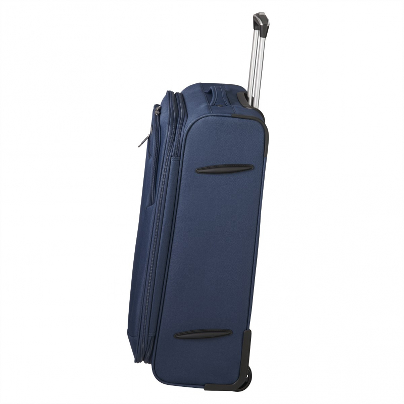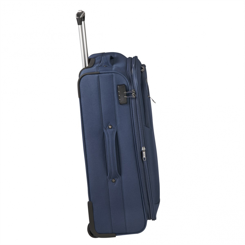 Na boku a vrchu kufra sa nachádza textilná rúčka pre lepšie prenášanie, taktiež je kufor vybavený aj výsuvným viacstupňovým teleskopickým držiakom.