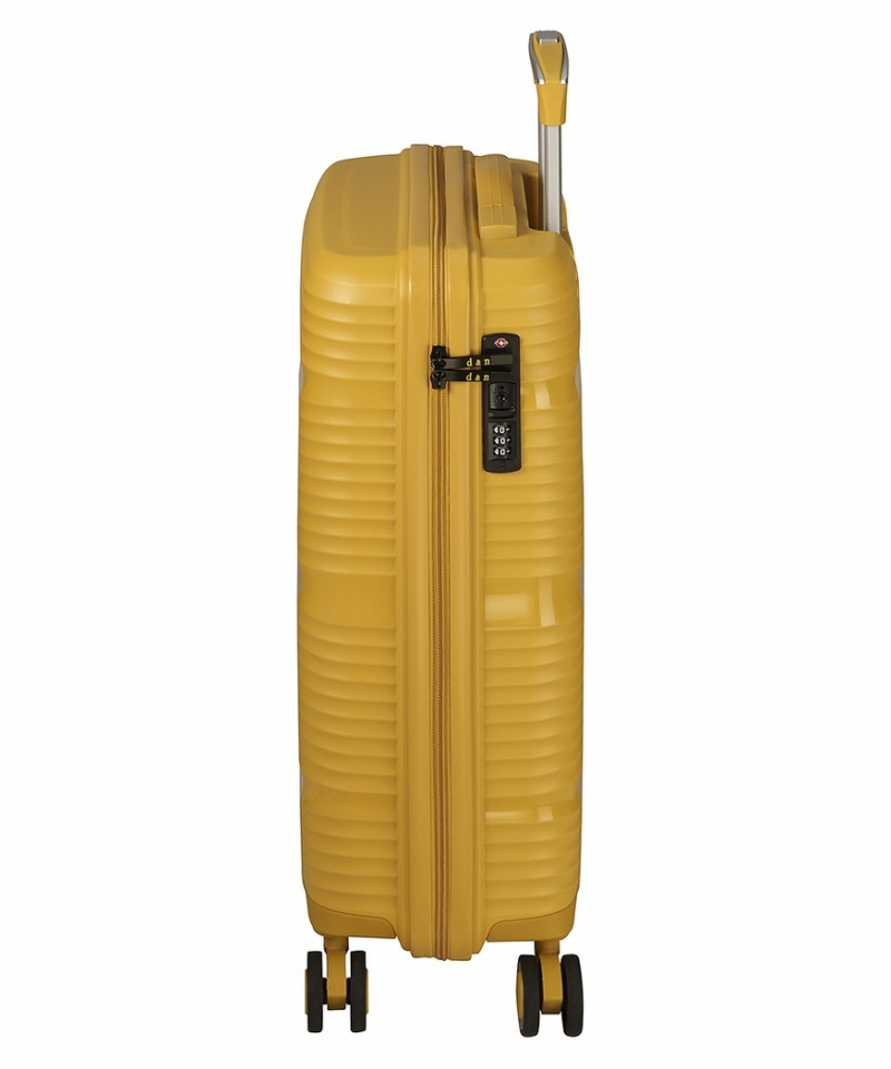 Stredný žltý cestovný kufor DN s TSA zámkom, vysokoodolný PP