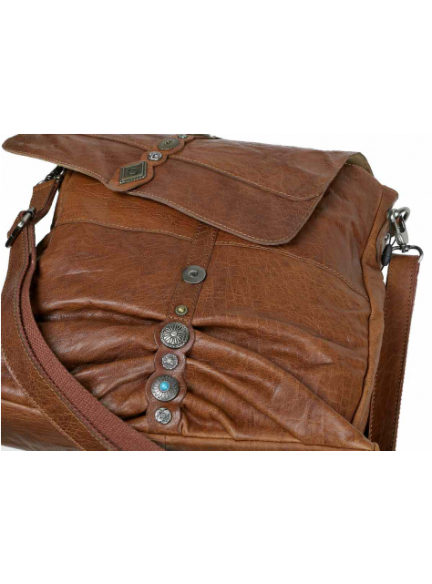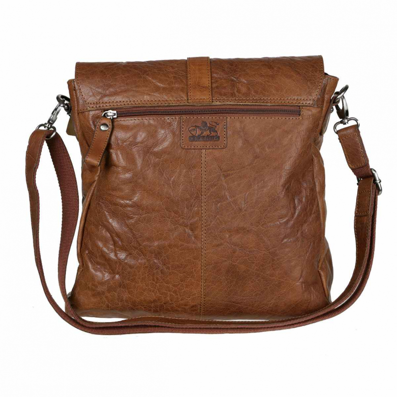 MATERIÁL: pravá koža - masívna, odľahčená a mierne zmäkčená v jemne leštenej a mierne krčenej povrchovej úprave, povrchové vrásnenie, vnútro - textilná podšívka, vnútro chlopne - brúsená koža