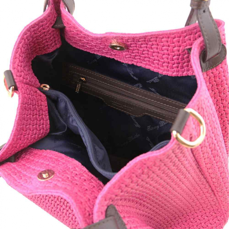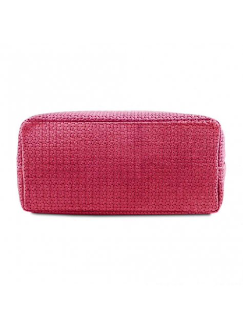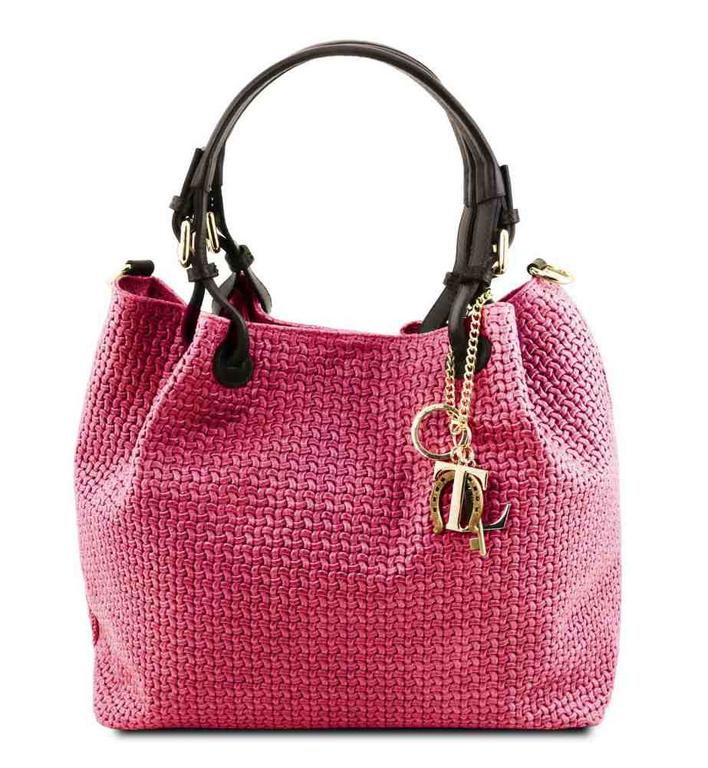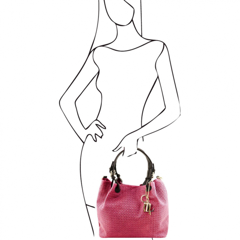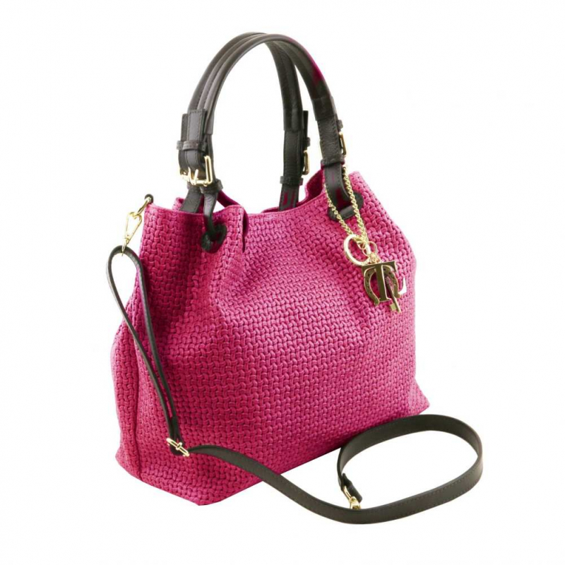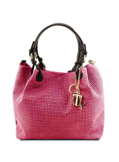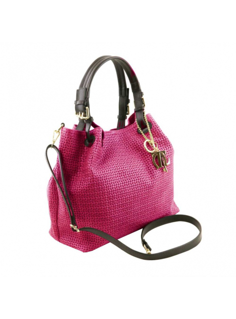 Trendová dámska kožená kabelka WOVEN značky TUSCANY LEATHER. Paktická štýlová kabelka v sýtoružovej farbe (magenta) oživí dámsky šatník.