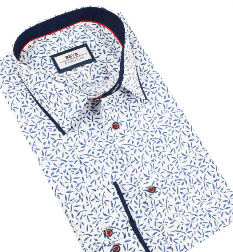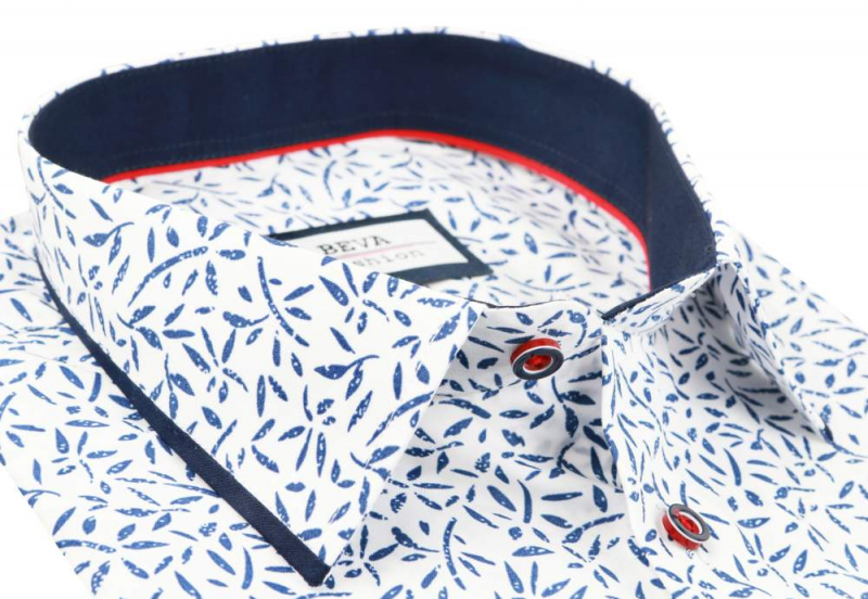 Štýlová obleková košeľa so vzorom a lemovaním, košeľa s dlhým rukávom BEVA KLASIK. Trendová košeľa v klasickom strihu na výšku postavy 176 - 182 cm.