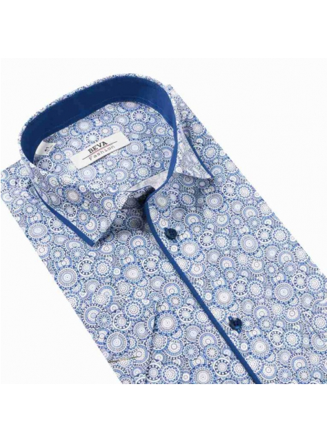 Štýlová modro-biela košeľa BEVA slim kr.rukáv T2283