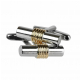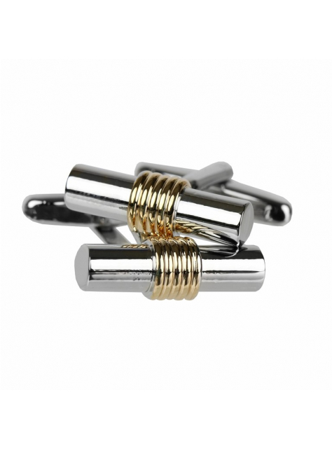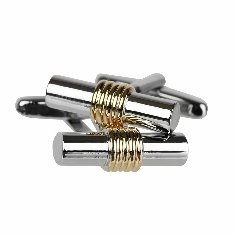 Manžetové gombíky valcového tvaru - strieborné leštené s nadsadeným stredom kovom zlatej farby.