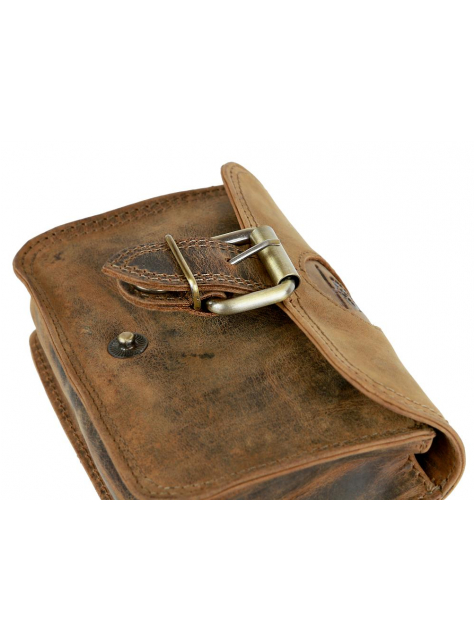 Atraktívna štýlová taštička z hovädzej kože prémiovej kvality. Zadná strana s pútkom na opasok (vhodné pre opasok max. šírky 5 cm. Hlavný priestor uzatvorený s poklopom s pripínaním na kovový gombík, v jeho vnúti postranná plochá kapsa na zips. Určená pre bezpečné uloženie vášho mobilu, dokladov, malej peňaženky, kľúčov a pod.