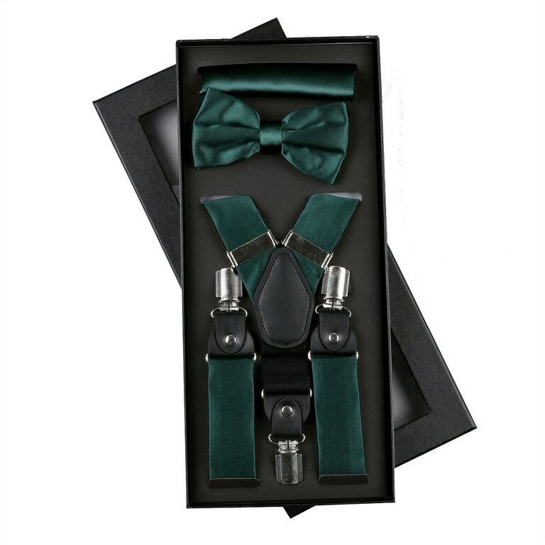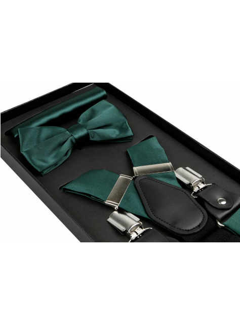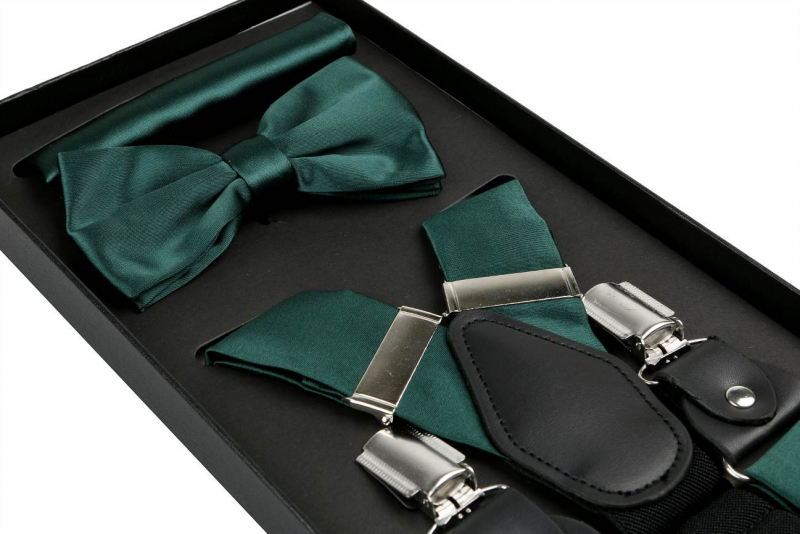 Elegantná súprava zelená smaragdová - traky, motýlik, vreckovka
