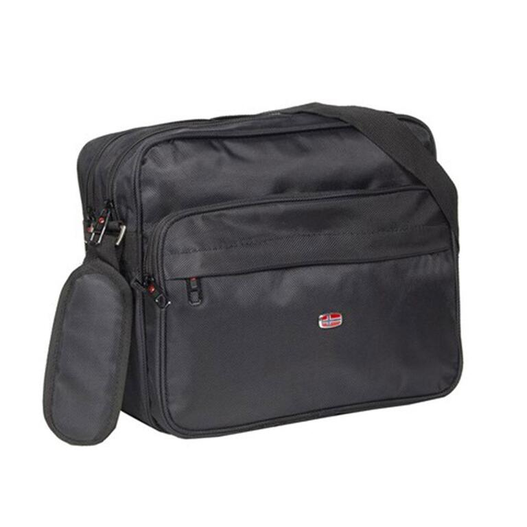 Praktická pánska taška-brašna z kolekcie NEW-REBELS. Taška na bežné denné nosenie aj na krátke cesty. Veľkosť 33 x 12 x 28 cm vhodná na dokumenty A4 formátu. Poskytuje priestor pre prehľadné uloženie vecí v predných priečinkoch, väčší priestor v hlavnej vnútornej komore a potom ďalšej samostanej komore je miesto pre dokumenty. Všetky priečinky majú zipsové uzávery. V zadnej časti je popruh pre nasadenie na výsuvný držiak cestovného kufra. Popruh na rameno pevne uchytený, s ramennou poduškou, nastaviteľný do max. 145 cm .