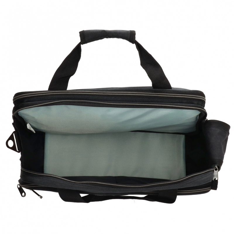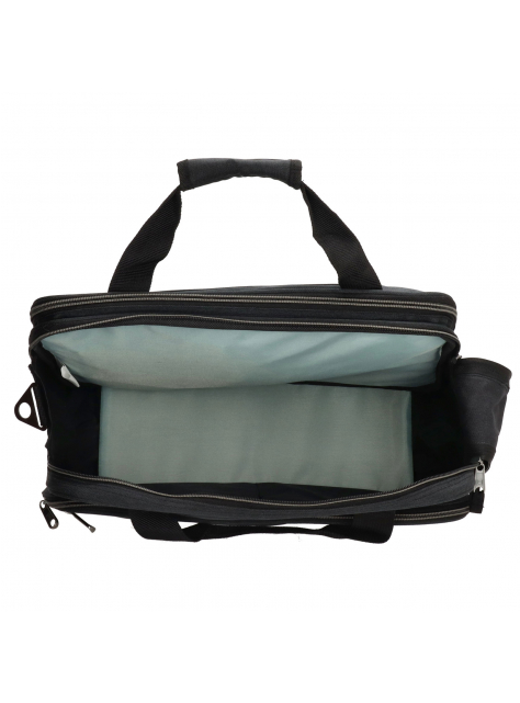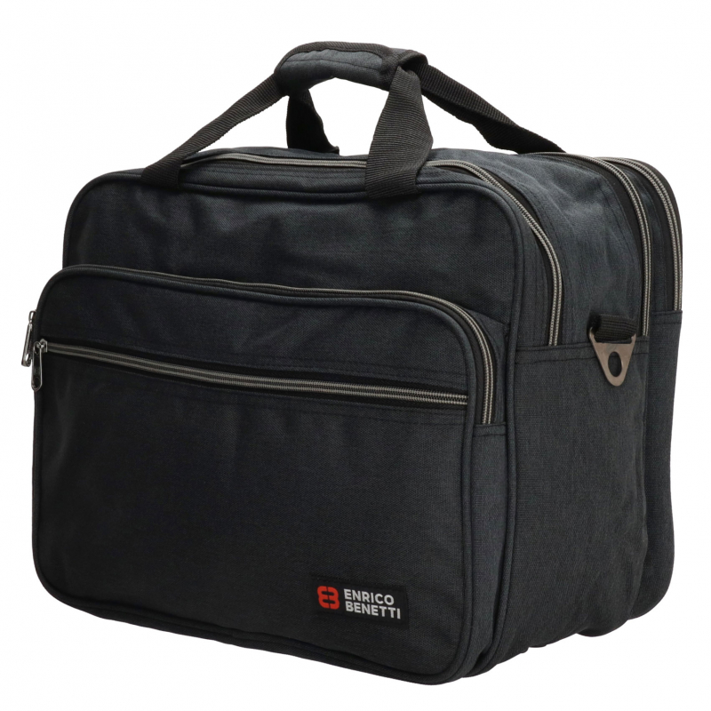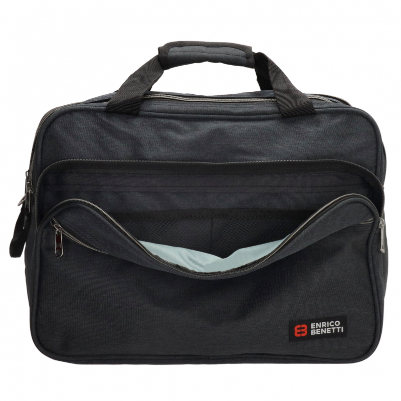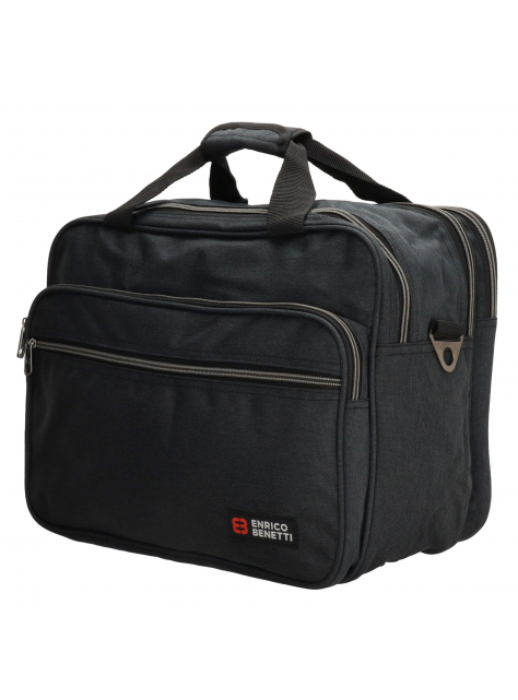 Kvalitná cestovná taška z poslednej kolekcie cestovnej batožiny zn. ENRICO BENETTI - s úchopom za rúčky alebo nosenie na rameno. Vhodná na cesty, ako pracovná a športová taška. Svojimi rozmermi spĺňa parametre kabínovej batožiny v lietadle. Hlavná komora disponuje dvojzipsovým uzatváraním, priečinky na zips, popruh na vonkajšej zadnej stene so suchým zipsom slúži k prichyteniu tašky k cestovnému kufru trolley (na výsuvnú rukoväť kufra).