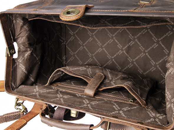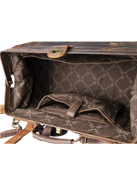 Kožená taška - kufrík GreenLand CLASSIC veľkosti 41 x 27 x 25 cm Taška s kovovým rámom, úcjopom za rúčku a odnímateľným ramenným popruhom.
