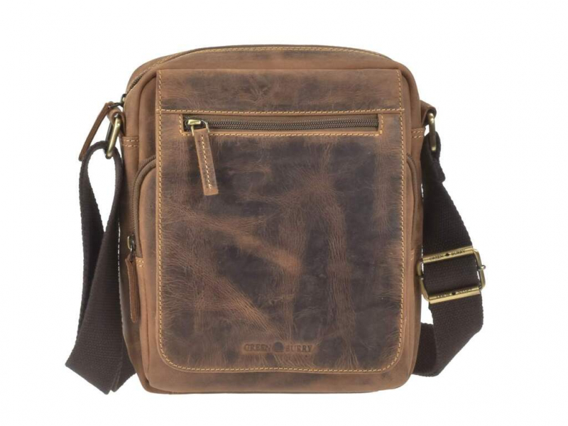 Taška na rameno zn. GREENBURRY z jemne brúsenej kože v prírodnom tieňovanom vzhľade. Každý kus je svojim vzhľadom a kresbou originál.