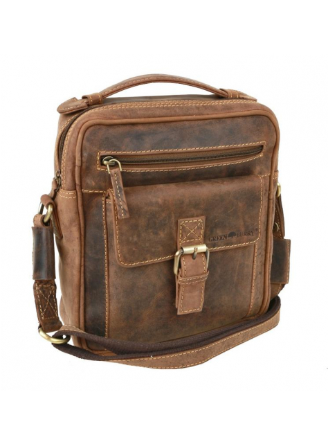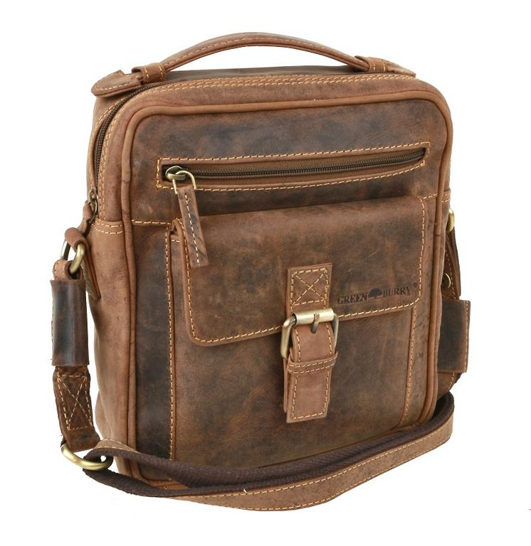 Športovo-elegantná príručná taška GREENBURRY na rameno alebo cez plece. Taška obsahuje aj rúčku na úchop do ruky. Vintage taška z brúsenej kože, formát na výšku.