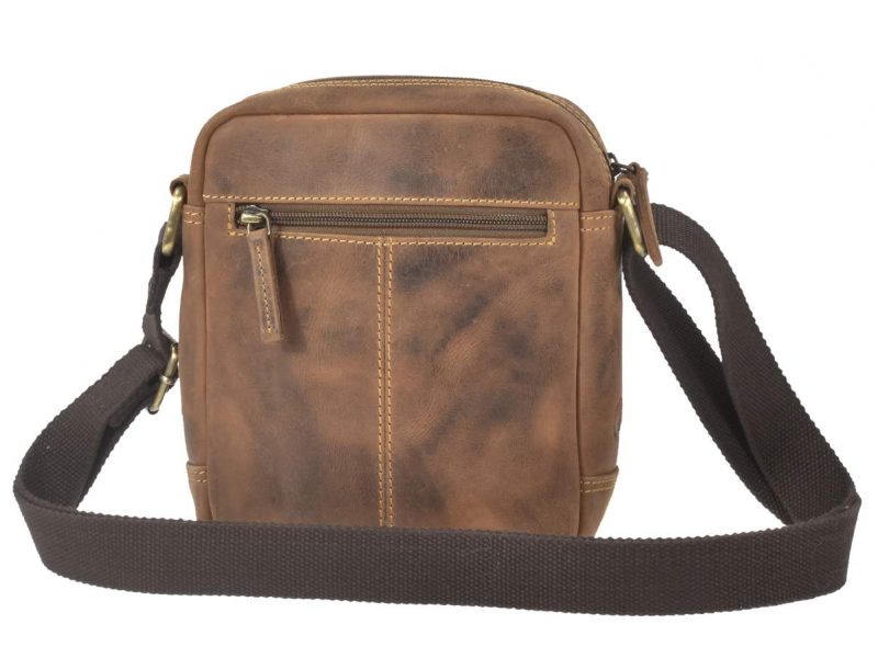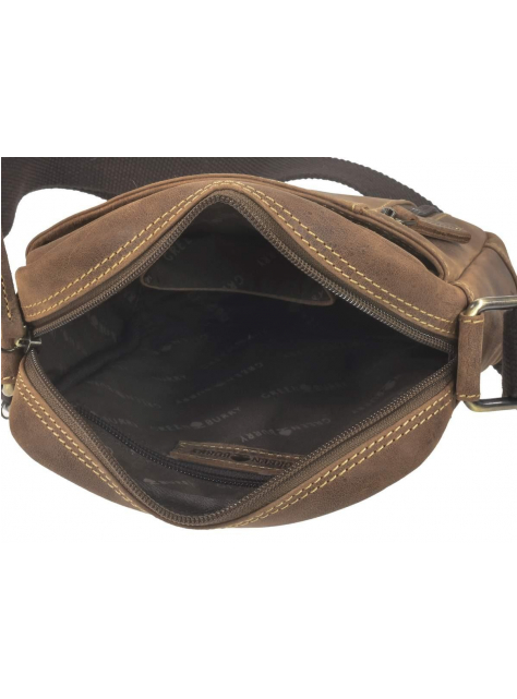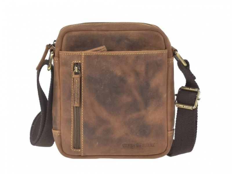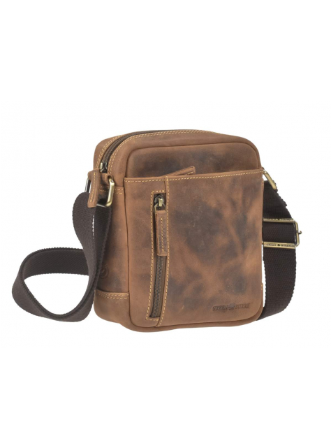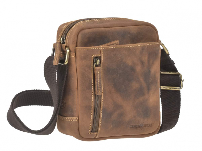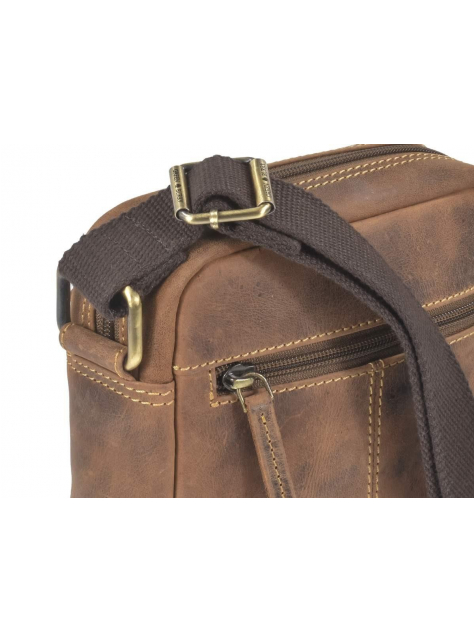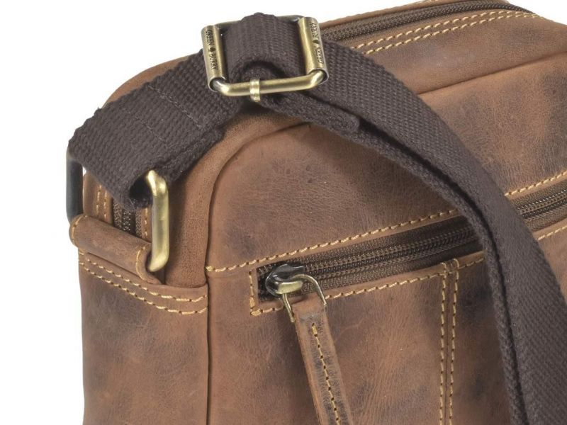 Príručná taška na rameno zn. GREENBURRY z jemne brúsenej kože v prírodnom tieňovanom vzhľade. Každý kus je svojim vzhľadom a kresbou originál.