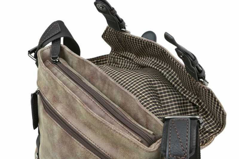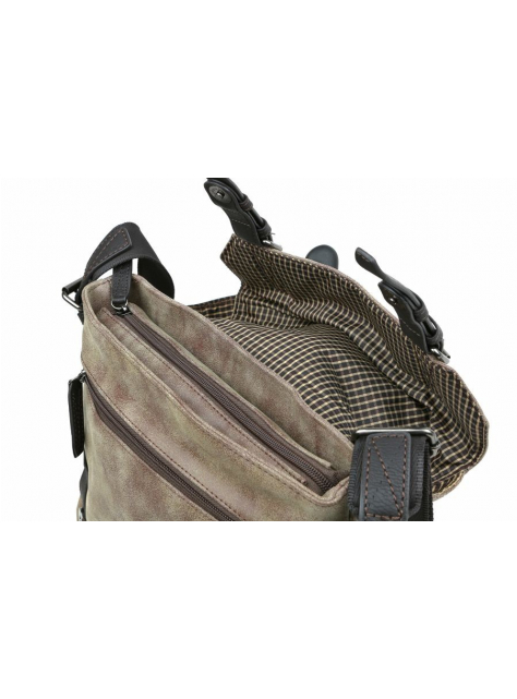 Taška na rameno s krátkou chlopňou so zapínaním na magnety. Príručný formát, prakticky riešená taška s nízkou váhou, prispôsobí sa obsahu. Moderný materiál, zamatovo príjemný povrch, imitácia brúsenej kože.