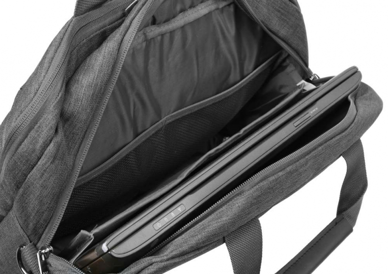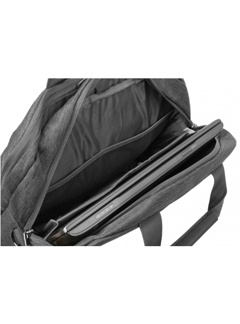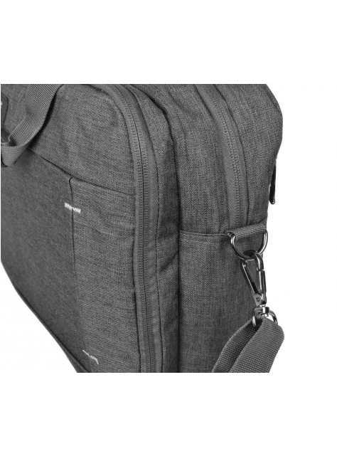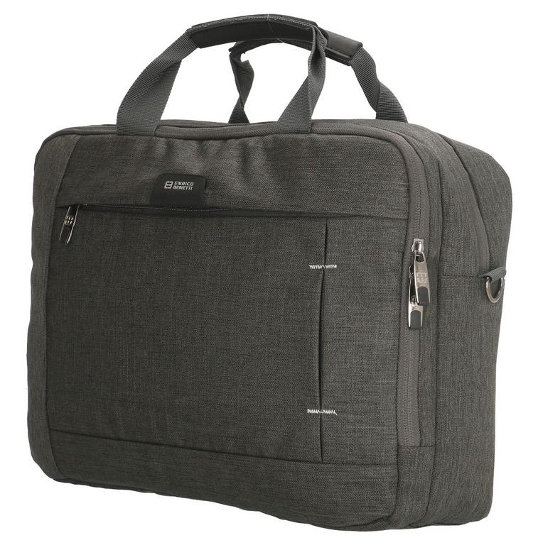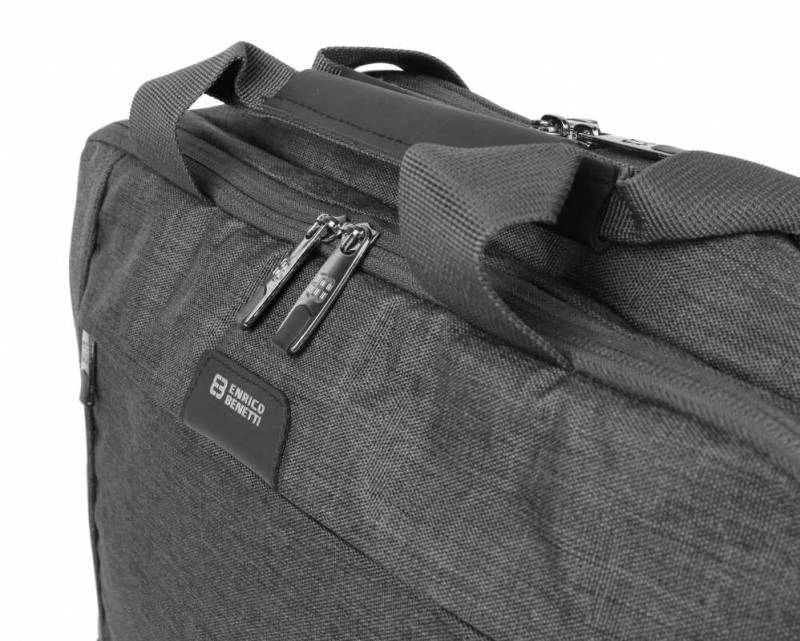 Kolekcia ENRICO BENETTI SYDNEY ponúka biznis dvojkomorovú tašku, ktorá je ideálna na prenos notebooku, tabletu, dokumentov do práce alebo do školy. Taška s polstrovaním po celom obvode (steny aj hrany držia svoj tvar) a s množstvom úložného priestoru. Vnútri hrubo polstrovaný priečinok určený na notebook. Vonkajšia zadná strana s popruhom pre prichytenie k trolley. Popruh s polstrovanou výstužou na rameno. Vyrobená z moderného materiálu - polyester v 2 tónoch (melírovaný šedo-čierny).
