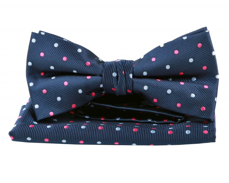 Tmavomodrý set motýlika a vreckovky s bodkami ORSI A2