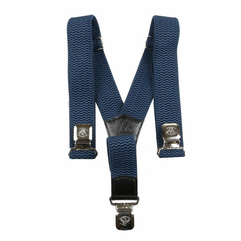 Traky modré v modro-šedej farbe s gavírovanými kovovými klipmi - vhodné ako traky k nohaviciam, športové, voľnočasové (do džínsov), pracovné.