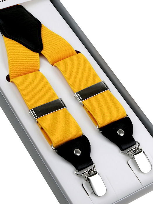 Traky v žiarivo žltej farbe, šírka 3,5 cm.