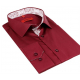 FAREBNÉ PREVEDENIE: bordová (tmavo-červená) s kontrastným podšitím goliera a manžiet, gombíky tmavočervené
