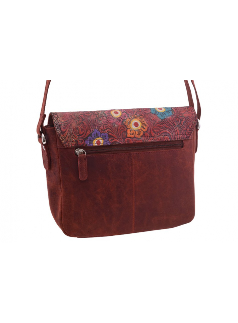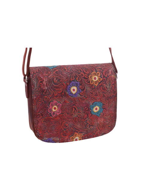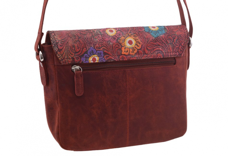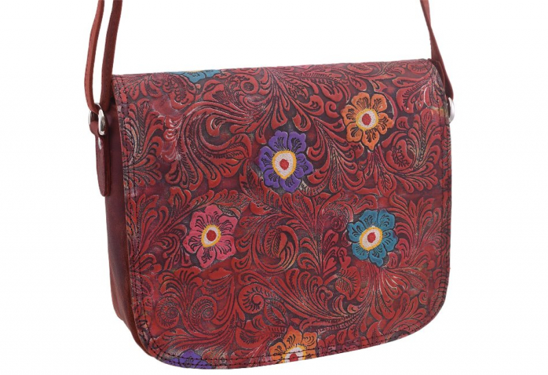 Pravá koža s hlboko razeným kvetinovým motívom na prednej chlopni. Každý kus s originálnym motívom.