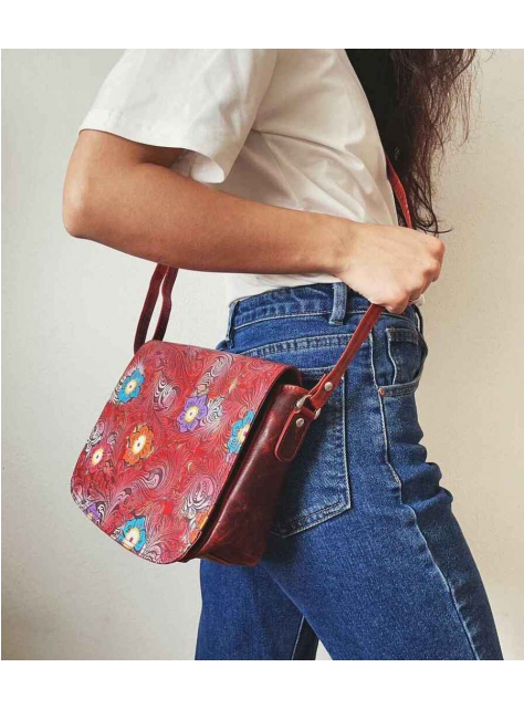Trendová kožená kabelka ručne maľovaná MERCUCIO červená