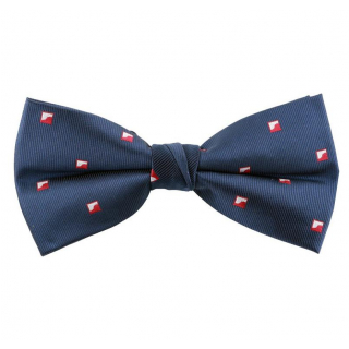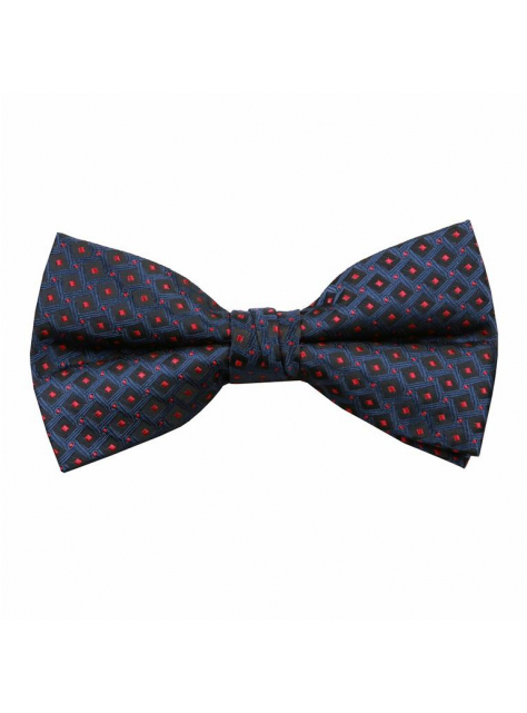 Pánsky trendový motýlik ORSI - tmavomodrý s červeným vzorom. Pánsky motýlik je pevne uviazaný, zapínie kovovým háčikom.