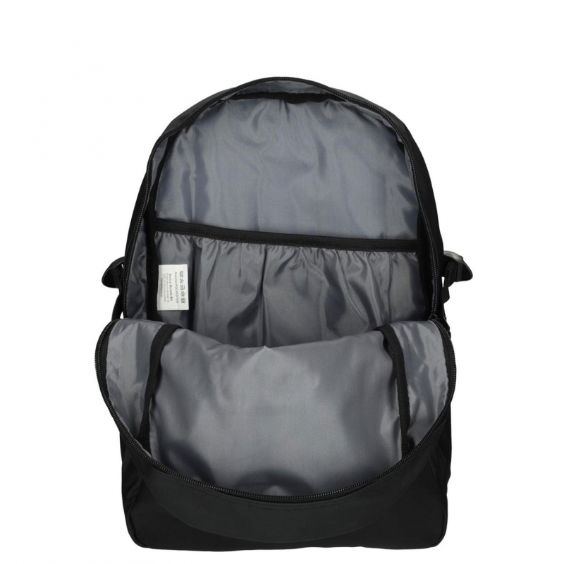 Vnútorný priestor je voľný, obsahuje jednu samostatnú priehradku na tablet alebo notebook do 14". Celá zadná stena batohu je ergonomicky masívne vystužená (polstrovaná), rovnako aj popruhy - maximálne pohodlie pre zniženia napätia na ramenách a chrbte.
