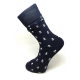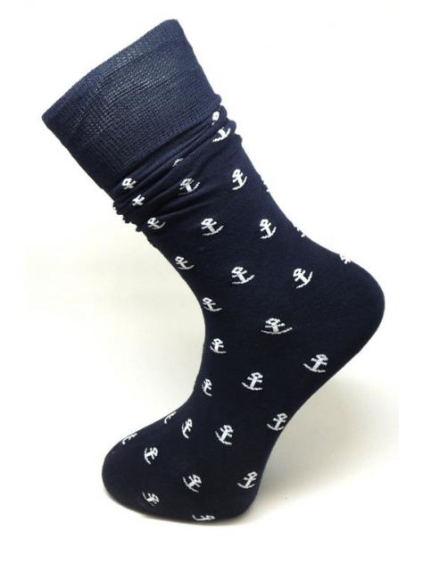 Moderné pánske ponožky ORSI tmavomodré s bielymi kotvami hladké, elegantné do obleku. Prírodný materiál, hladká tkanina, elastický lem s jemným zverom - rovnomerne tkaný a rovnomerne rozložený tlak pre pohodlné nosenie.