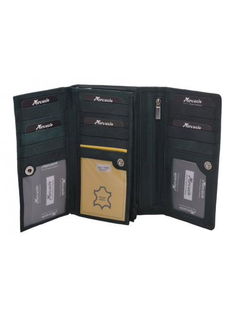 Elegantná dámska peňaženka MERCUCIO z kvalitnej hovädzej kože. Listový formát s priečinkami pre 12 - 15 kariet, doklady a bankovky.
