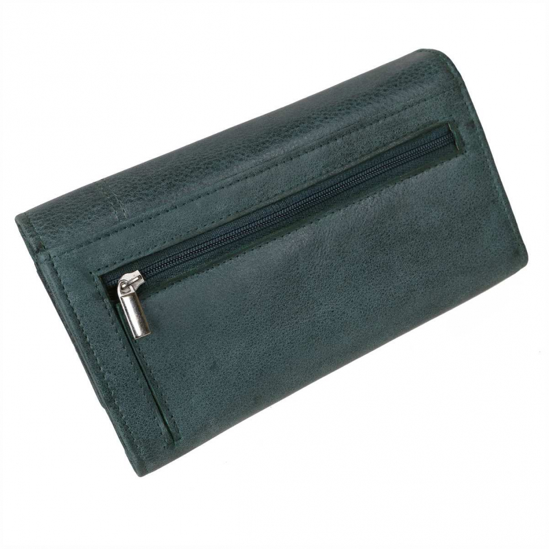 Tyrkysová kožená peňaženka s veľkým mincovníkom, 15 kariet