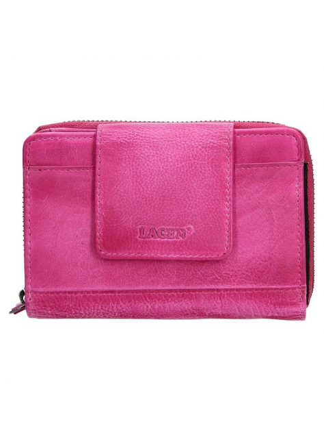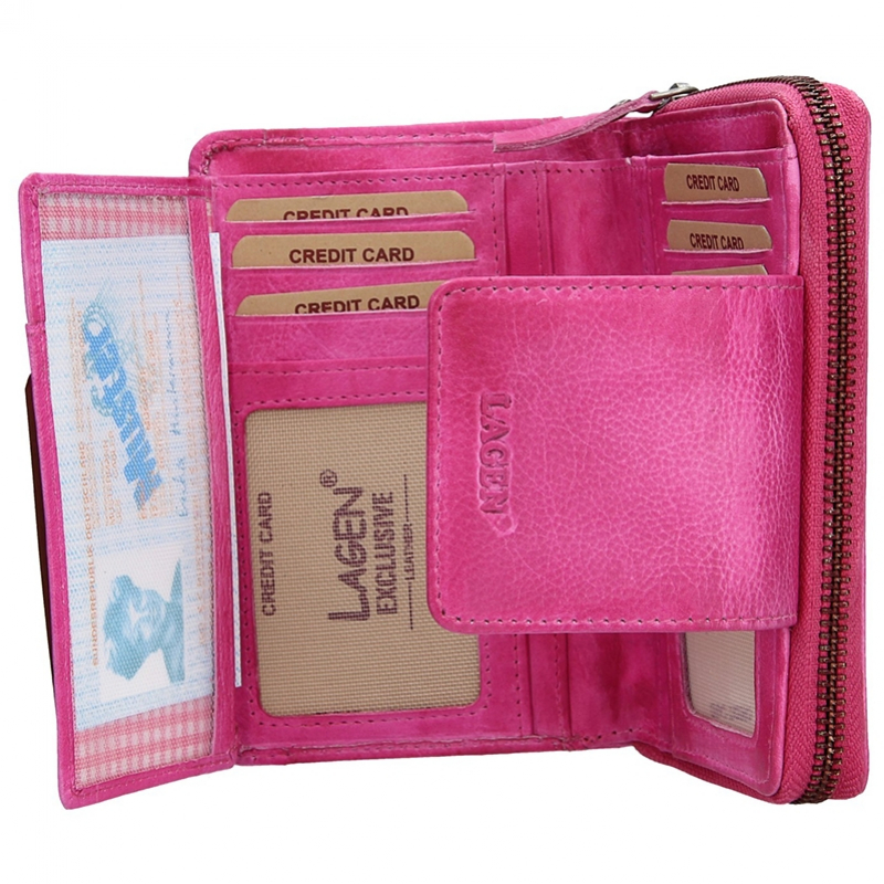 Fuchsiovo-ružová dámska dvojdielna peňaženka LAGEN Soft. Veľká priestranná peňaženka s prackou, veľký dvojdielny mincovník.