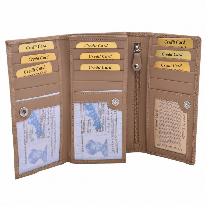 Veľká exkluzívna peňaženka s potlačou, béžová