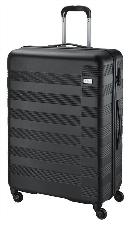 Veľký cestovný kufor D&N na 4 otáčavých kolieskach. Elegantný čierny škrupinový kufor z ľahkého ABS plastu, pružný, odolný materiál, ľahko umývateľný.