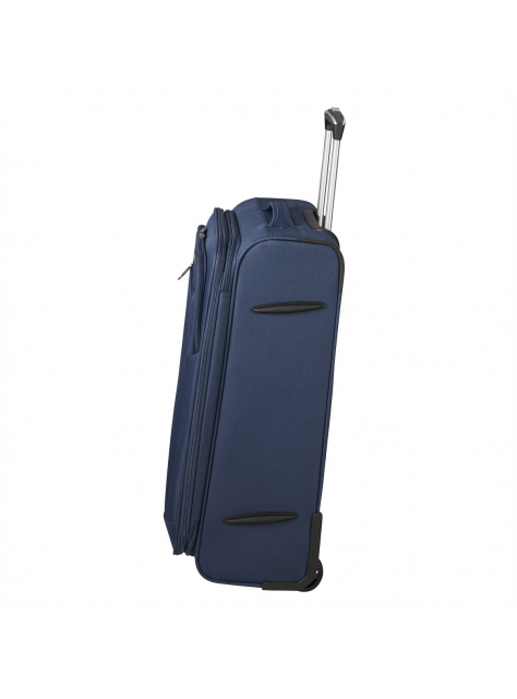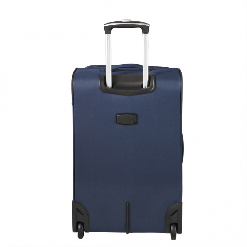 Na boku a vrchu kufra sa nachádza textilná rúčka pre lepšie prenášanie, taktiež je kufor vybavený aj výsuvným viacstupňovým teleskopickým držiakom.