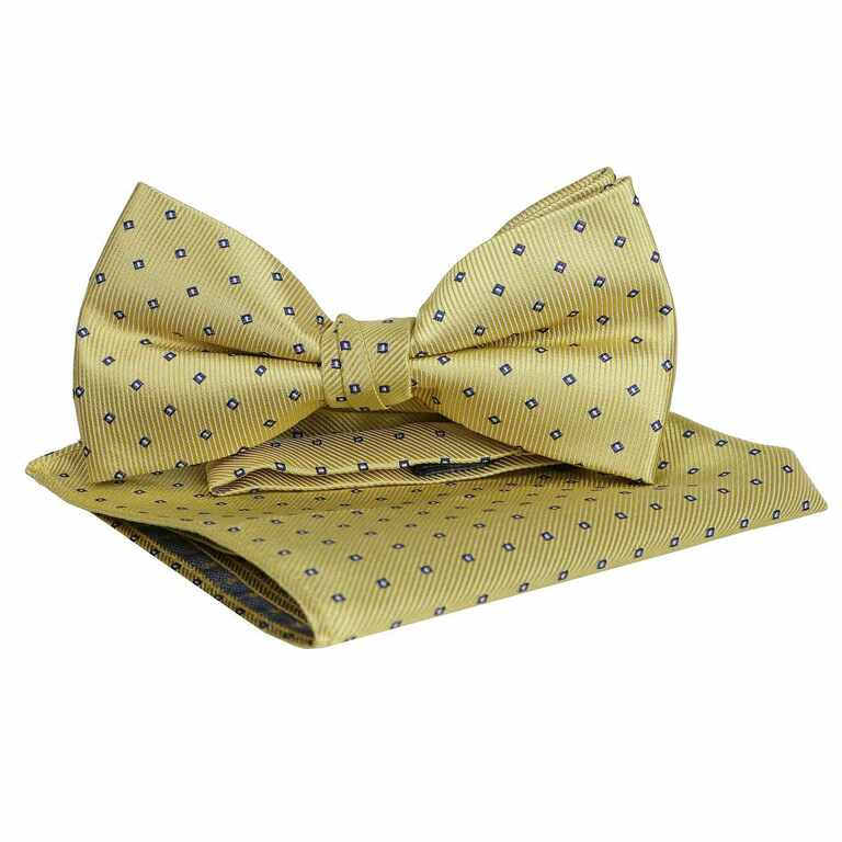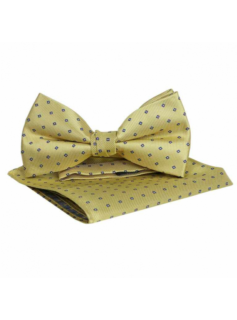 Vreckovka a motýlik žltý, modré štvorčeky, tkaný polyester