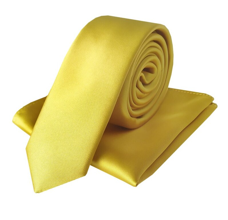 Žiarivo-žltá slim kravata 5 cm s vreckovkou