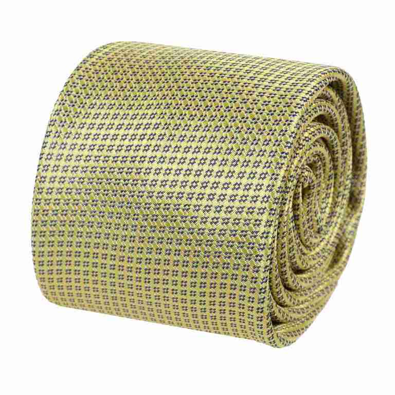 Kravata v príjemnej žltej farbe s hustým vzorom.