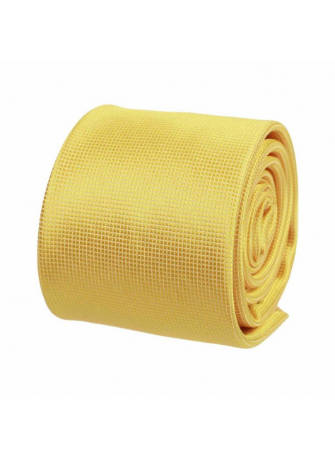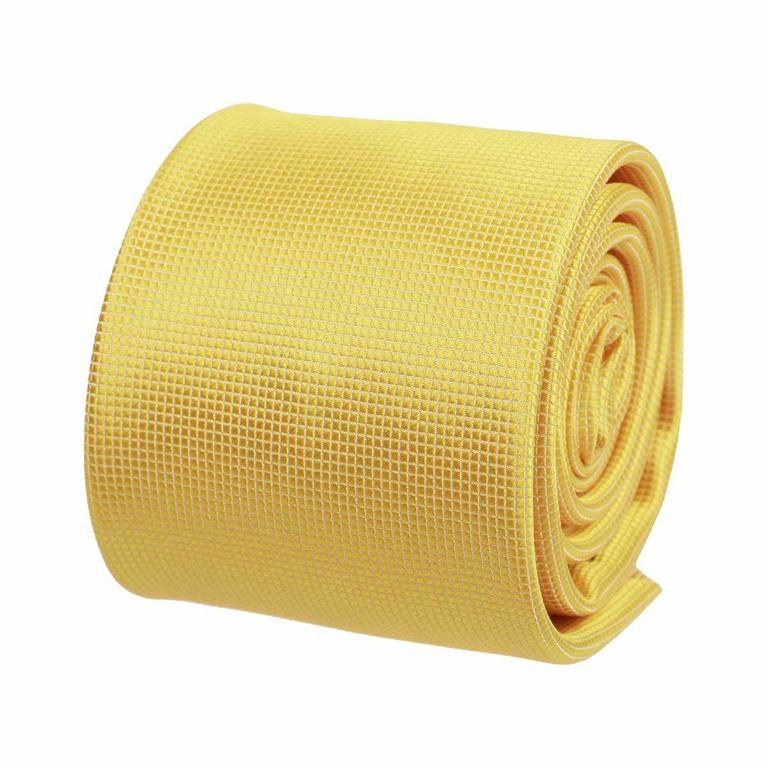 Žltá slim kravata s drobnými štvorčekmi 7 cm